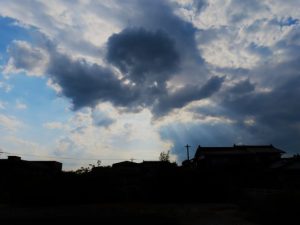 ・3、飼料用トウモロコシの実が大きくなってきた。本日、午前中は快晴だったが、夕刻散歩ごろから雲が多くなって、帰宅した駐車場から見た西空は4の状況だった。〔仕事&歩数〕明日の阿宮川柳会向け資料作成。7,294歩。