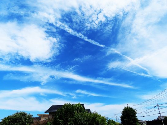 ・本日、琴浦町の最高気温は31℃だったが、朝から蒸し暑かった。写真1は、昼前散歩にて。飛行機雲が崩れてダイナミックな模様。〔仕事&歩数〕不浪人賞選考。7,141歩。