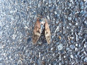 ・各地の水ガメの水が干上がってきて、雨が欲しいところだが、本日も憎らしいほどの快晴。写真1、昼前散歩の農道にて。飼料用トウモロコシ畑の上の雲。2、鳴き終えた蝉が駐車場で息絶えていた。〔仕事&歩数〕7月末締切に向けて作句&投句。7,043歩。