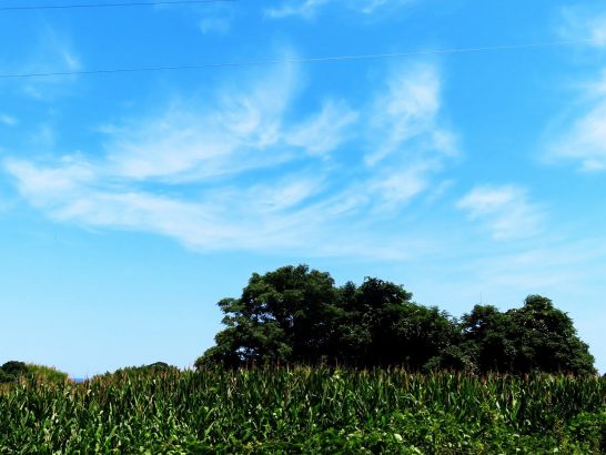 ・各地の水ガメの水が干上がってきて、雨が欲しいところだが、本日も憎らしいほどの快晴。写真1、昼前散歩の農道にて。飼料用トウモロコシ畑の上の雲。2、鳴き終えた蝉が駐車場で息絶えていた。〔仕事&歩数〕7月末締切に向けて作句&投句。7,043歩。