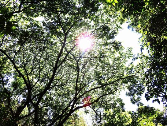 ・各地の河川も農家も「雨が欲しい」と期待しているが…、本日も晴れ。岡山県の高梁市では最高気温40.4℃とのことでビックリ! 写真1~2、30日と同じ「太陽光線に透かした葉」。〔仕事&歩数〕川柳塔社向け「せんりゅう飛行船」。6,559歩。