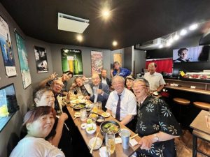 ・終了後、台湾からお出での杜青春さんを囲んで、上六駅北側の飲み屋でチョイと一杯。生ビールで乾杯後は芋焼酎湯割り。アバウト2時間ほど楽しくワイワイ。先ほど杜青春さんからメールで届いた写真(3)青春さん、サンキューベリーマッチでした! 終了後ホテルへ帰って、また別室にて数名でワイワイ。自室に帰ったのは8時過ぎ? 風呂に入って汗を流してバタンキュー。〔仕事と歩数〕川柳塔社常任理事会&句会出席。5,477歩。