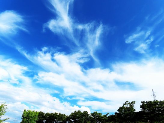 ・午後4時頃、夕刻散歩へ出かける前に農協の電光掲示を見ると34℃だった。濡れタオルを首に巻いて総合公園の遊歩道をテクテク。ダイナミックな雲(写真1)。〔仕事&歩数〕某企業川柳選評再チェック後メール。6,351歩。