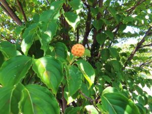 ・写真1、農道にて。雑木に絡みついている葛の蔦。道路の境界線から、50センチぐらい出っ張って、車の走行の邪魔をしている。写真2、ヤマボウシ実が色づいてきた。本日、夕刻、息子から「お世話になりました!」と電話あり。帰路は志布志湾からフェーリーで大阪港へ。そこから車で東京まで帰ったとのこと。ココアも元気で、おとなしくしていたとのこと。〔仕事&歩数〕川柳塔誌向け「せんりゅう飛行船」。5,511歩。