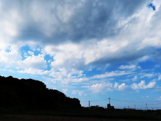 ・本日も快晴で、琴浦町の最高気温も33℃。昼前散歩も濡れタオルを首にまいて。南の方に夏雲(写真1)その他は一面の青空。その遥か上空に飛行機雲。デジカメの望遠を効かせてパチリ(2)。飛行機雲はすぐに消えていたので、上空は乾燥しているのだろう。夕刻散歩では雲が広がってきた(3)。〔仕事&歩数〕愛染帖選考。6,739歩。
