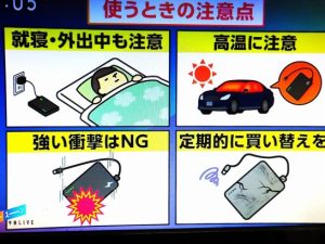 ・スマホやデジカメなどに使用されているリチュームイオン電池から出火する事故が相次いでいる。原因は衝撃や高温に曝していたことらしいが、イマイチ解り難い。特に古くなって劣化したものや充電中。そして残暑に注意とのこと(2~3)。