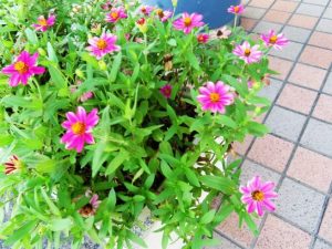 ・写真1、昼前散歩にて、珍しく大山の頂上が見えていた(白い雲の右端の下)。2、立ち寄ったマーケット入口の花。〔仕事&歩数〕しんぶん赤旗「読者の文芸」再チェック後メール&投函。6,075歩。