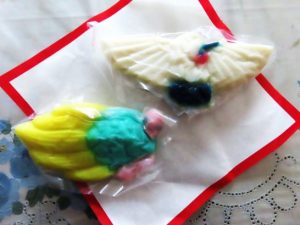 ・本日、「敬老の日」にて、我が保地区も敬老会を開催。数日前に2班の班長さんがお祝いの鶴亀のカマボコ(町内の蒲鉾店製。例年同じもの)(写真3)をご持参下さったときに、「お二人でご出席を…」と連絡下さった。が、店があるので、例年のように家内が店番で私だけ出席。10時前に公民館へ。本日の出席者30名余り。10時から開会。区長の挨拶や町議会議員の祝辞、そして、社会福祉協議会の女性職員さんから講演、というよりも反射神経を鍛えるゲームの指導。