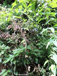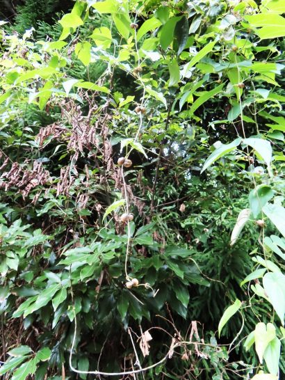・本日、朝方は雨だったが、その後はずっと曇天。夕刻散歩では雲が薄くなって、西空の雲の向こうで太陽がぼんやり光っていた(写真1)。昼前散歩ではムカゴの子どもが「お待たせしました」と揺れていた(2)。〔仕事&歩数〕センマガ文学賞選考。7,441歩。答え「くどい」「かわす」「たまに」「なおざり」「かすがい」「さそり」