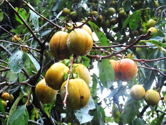 ・本日、朝から小雨。降ったり止んだり。昼前散歩では降っていたので傘を差して歩く。先日の散歩のとき、チラッと見たら、総合グランドに重機が入っていたので「はて、何をするのだろう?」と思っていた。が、バックネットが綺麗に撤去されていた(写真1)。さて、新しいのが出来るのだろうか? 総合公園の柿(渋柿)も色づいてきた。(2)。〔仕事&歩数〕明日の岩美句会&週末の大会向け作句。6,931歩。