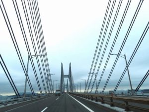 ・11日(土)、朝6時40分出発。昨年も同じような時間に出発して、早すぎたようなことをブログに書いてたが、やはり、遅れてはいけないので…。関金&犬狭峠経由~湯原インターから米子道~落合インターから中国道~北房インターから岡山道~瀬戸大橋を渡って(写真1、2)高松道に入り、会場の【香川県社会福祉総合センター】着は9時40分。受付を済ませて、選者室へ。先ず事前投句を選考。のち当日参加の前取りを選句。