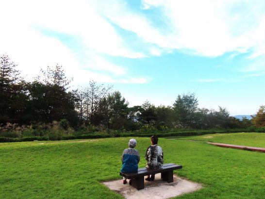 ・終了後、蔀 帆子さんと平井美智子さんに同乗して頂いて3人で、津山のホテルへ。途中、高梁SAで休憩。雲が綺麗だった(写真4)。いつもの「考えるベンチ」に休んでいたお二人をパチリ(写真5)。ベンチも「別嬪さんに座っていただいて、照れるな~」と言っていた。津山駅前「ホテル・アルファ―ワン」の駐車場着は午後5時半頃? 休憩してから夕食。3人で食卓を囲んでいたら、小島蘭幸さんが来られたので4人でビール&赤ワイン等々。愉快に語り合って「明朝は8時から朝食。9時出発」とお約束して「おやすみなさ~い」。〔仕事&歩数〕香川県川柳大会出席。歩数アバウト2,500歩。