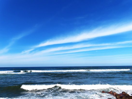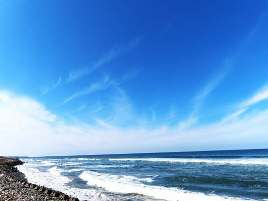 ・本日も快晴で最高気温も19℃まで上がったらしいが、室内ではひんやり。身体を温めるために、たびたび外出して散歩。午後2時半頃に出たとき、北の空に帯状の雲が見えたので、海岸まで車で3分ほど走ってパチリ(写真1)。2はウエストサイド。3は夕刻散歩にて。総合公園の紅葉。〔仕事&歩数〕センマガ向け「名句鑑賞」。7,514歩。