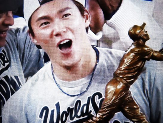 ・ワールドシリーズ、2勝3敗と追いつめられていたドジャース。ブルージェイズの本拠地トロントで昨日勝利、3勝3敗の五分に持ち込み、本日の決勝戦も延長11回まで激闘の末、勝利してワールドシリーズを制覇🥎!! 山本由伸(岡山県備前市出身)はMVPに(写真1)。メデタシ~~~🎯🎯🎯 タイガースの1勝4敗とはエライ違い…(>_<)。
