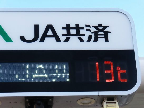 ・写真1は昼前散歩にて。定点観測の総合公園野球場。10時頃までは雨が降っていたが、昼前から晴れてきた。2は夕刻散歩に出る前に見た農協の電光掲示板は13℃。風が吹くと肌寒かったので、ジャンバーの下に薄いセーターを着用。3は夕刻散歩にて。昨日の夕映えに似た雲。〔仕事&歩数〕鹿野川柳会出席。8,185歩。