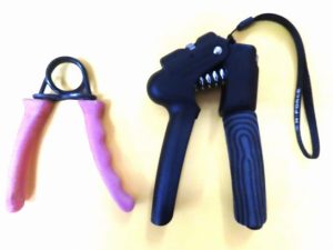 ・それを見ていて、ふと「グリップがあったなあ~」と思い出した。で、探し出したのが写真4。左のは、もう20年?以上も前。右のは数年前。いずれも「握力を鍛えなければ…」と思って購入したのだが、習慣になるまでに飽きて、放置したまま。左のは安物で硬くて使い難い。右はダイヤルで強度の調整が可能。また使いやすいので、再度チャレンジして「散歩のように習慣づけたい」と思っている。(現在は、ベッドの横に置いて、目が覚めたときに右手と左手、30回ずつニギニギしている)