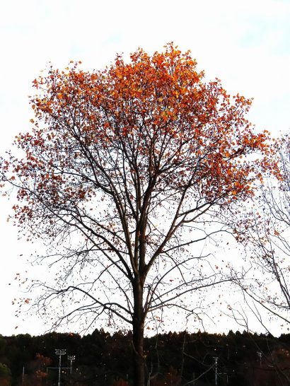 ・本日、朝方は小雨が残っていたが、次第に青空が広がった。だが、気温は昨日と同じ程度で、最高気温11℃ぐらい。明日からはまた爽やかな秋らしい気候になるとの予報。写真1、昼前散歩にて。公孫樹の紅葉と青空。2、大きな面白い形の夕映え雲。明日は良い天気ですよ~と言っていた。3、葉が半分ほどになってしまった紅葉。〔仕事&歩数〕大山滝句座会報発送段取り&発送。川柳塔社「愛染帖」選考。8,018歩。