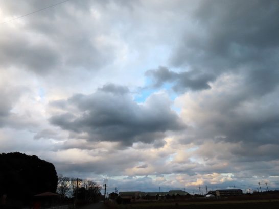 ・本日、終日曇天、ときどきパラパラと小雨。夕刻散歩では少し青空が覗いていた(写真上)が、正月三が日の予報には⛇が出ている。特に出かける予定はないが、お手柔らかに願いたいものである。〔仕事&歩数〕机の周辺片付け。1月句会向け作句。6,717歩。