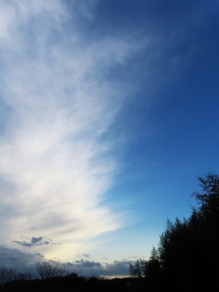 本日の最高気温は15℃ほどまで上がったようだが、風が強かったので、散歩中もそれほど暖かい感じはしなかった。写真上の1は昼前散歩での雲と青空。2は夕刻散歩での雲と青空。3は夕刻散歩から帰宅して駐車場からの雲。〔仕事&歩数〕しまね文芸フェスタ講演向けレジメ作成。7,870歩。