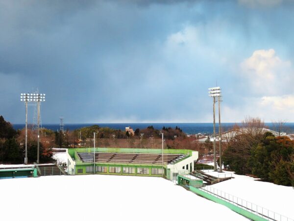 ・ここ二日ほどは冬型気圧配置が緩んで、曇ってはいたが雪も止んで穏やかな日だった。だが、今朝方からまた降りだして、朝9時前の拙宅前の定点観測は1の通り。昼前には雪が止んでいたので、散歩の代わりに、長靴を履いて徒歩7分ほどの郵便局へ。帰りは遠回りをして、合計アバウト20分ほどの雪道散歩。午後から夕刻までは吹雪になったり止んだり太陽が顔を出したりの繰り返し。太陽が出ているタイミングを見て総合公園へ。短靴で遊歩道をテクテク(2)。定点観測の野球場外野から日本海を見る。水平線はクッキリ見えていたが、灰色の雲を写して黒っぽい濃紺だった(3)。また、その北東の空には、低く垂れ込んだ雪雲の向こうに青空が見える複雑な空模様だった(4)。〔仕事&歩数〕締切が迫る誌上大会向け作句。5,720歩。