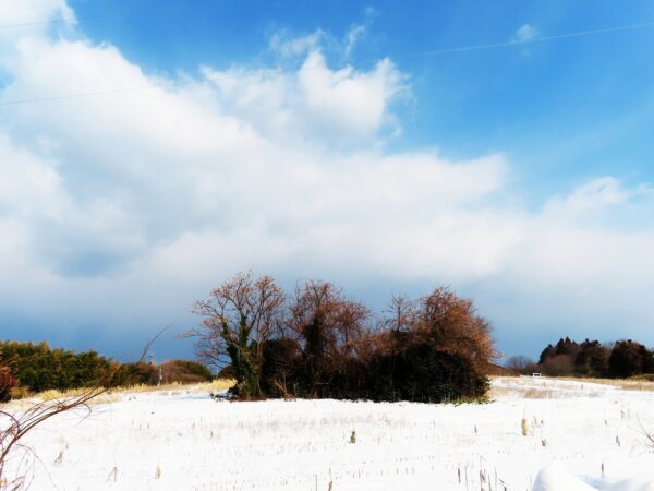 ・本日、久しぶりに青空が広がって爽やかな冬晴れ。昼前散歩では風が冷たかったが、路面の雪が蹴散らかされた農道を歩く(写真1)と定点観測の藪(2)。西のほうから晴れてきた(3)。夕刻散歩では雨が降ってきたので直ぐにUターン。〔仕事&歩数〕川柳展望会員作品評。鹿野句会向け作句。5,183歩。