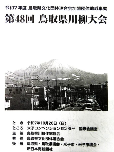 ・本日、掲題の【第48回鳥取県川柳大会】の発表誌が到着(写真3)。私の入選句については、10月26日のブログにアップしていますので、ここでは私の選によるベスト8をご紹介します。
