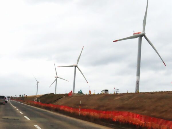 ・写真1、先日から農道脇に新しい電柱を立てる工事をしていた。向かって左側が新しい電柱で、ずっと向こうまで何本も立っている。右側は電線が張られているこれまでの電柱。2、今日の昼前散歩にて。同じ場所を遠くから見ると、中国電力の工事車が何台も来て工事をしていた。ガードマンが居るので、近くまで寄れず。推定するに新しい電線を張る工事?とすれば、右側の電線はどうなるのだろう。張り替え工事だろうか?工事が済んだ後で確認したい。3、鹿野からの帰途。北栄町の風車。手前の土盛りは山陰道の延長工事。完成まであと2年ほど?これが完成すると、鹿野まで5分ぐらいは早くなるかも。〔仕事&歩数〕鹿野川柳会出席。4,612歩(鹿野からの帰途に倉吉駅に寄ったので夕刻散歩はせず)。