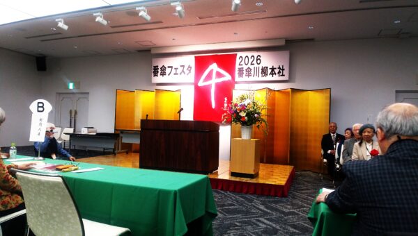 ・8日(日): 「番傘フェスタ2026」(写真3)に出席のため、余裕を持って7時に出発。山陰道~鳥取道~中国道もスイスイ。加西SAにて休憩と朝食。いつも渋滞する阪神高速池田線も日曜のおかげでスイスイ。ホテル・アウィーナの駐車場着は10時30分。早く着きすぎたので暫し休憩してから、会場の「たかつガーデン」へ。受付と投句を済ませて、選者室にて昼食を頂戴。投句締切は13時だが、12時30分に「中取り」が運ばれてきて「選句」開始。私の課題は「道半ば(詠み込み不可)」。案内チラシにも、投句用紙にも「詠み込み不可」と但し書きがされていたが、詠み込まれていたのが10数枚。最終的には15枚ほどあった。14時過ぎから各種セレモニーの後、15時過ぎから披講。残念ながら1度も呼名を上げられず。私の軸吟は下記の通り。