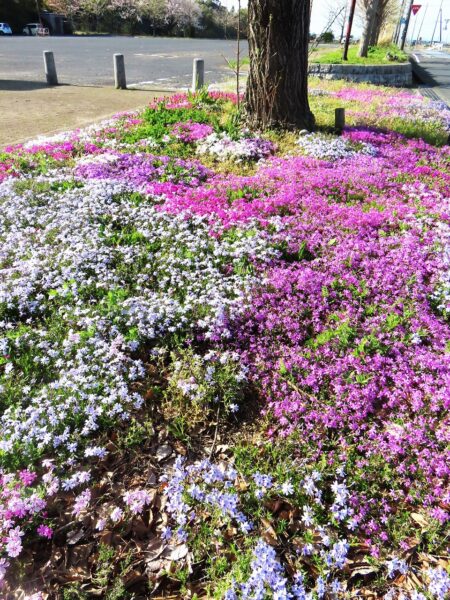 ・3時過ぎ終了。真っ直ぐ帰って総合公園にて夕刻散歩。上の「芝桜」の句を思いついた公園エントランスの芝桜(写真下)。〔仕事&歩数〕打吹川柳会出席。7,424歩。
