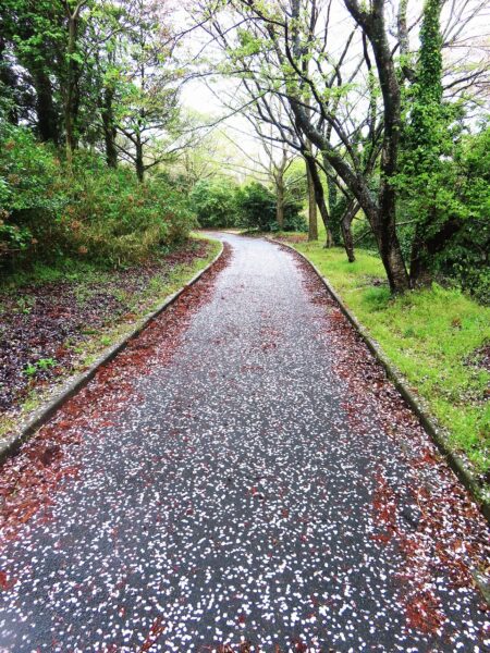 ・昼前散歩では小雨だったが、傘を差して総合公園を散歩。春雨に濡れた新緑が綺麗だった(写真1)。遊歩道では桜の花びら🌸がいっぱい(2)。数日前の暴風に負けてしまったのか、農道横の農具小屋が逆立ちしていた(3・小屋の右が基礎)。夕刻散歩では雨が少しきつくなってきたが傘を差して昼前とは違う農道へ。途中に「落石注意」という看板(4)があったが、「通行止め」ではないので、注意して歩いて、いつもの「切り通し」へ(5)。〔仕事&歩数〕川柳展望「会員作品評」。6,207歩。