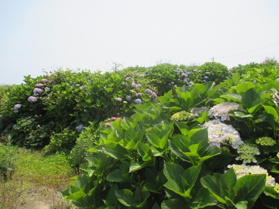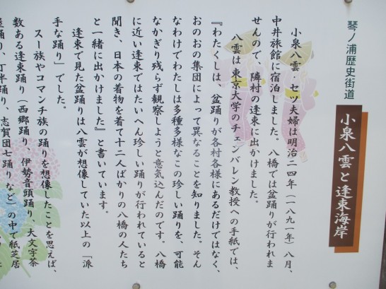 久しぶりに、琴浦町の逢束(おうつか)海岸にあるアジサイ公園に。もう20年ぶりぐらいか。頭の中に残っていたイメージでは、もっと広範囲だとおもったが…。すぐ横に新しい案内板があったのでパチリ。ここには小泉八雲も来ていたらしい。(写真下)