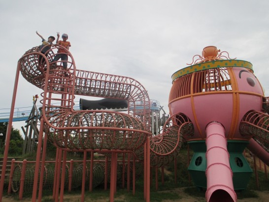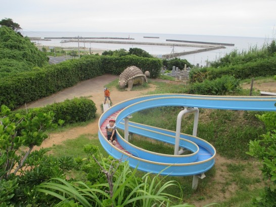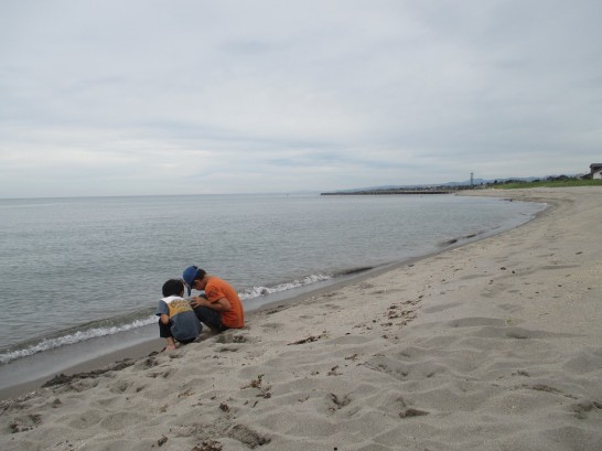 本日、朝9時過ぎより、町役場にて入札業務1件あり。落札は町内同業他社。終了後、10時~午後1時ぎまで、家内と義姉と孫2人が墓の草取り&昼食に出かけている間に、店番をしながら、遅れ気味の「国文祭ジュニア選」。店は相変わらず開店休業状況。おかげさまで、かなり挽回して、ほぼ予定通りに戻る。皆さんが帰宅して休憩(下の孫は昼寝)したあと、午後3時過ぎから2時間ほど、たまにはジージ役を、ということで、彼らがお気に入りの遊具がある「たこパーク」と近くの海岸へ。