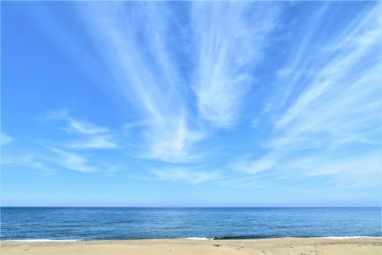 選者4名の披講が終わってから、先月例会の没句をピックアップしたコピーをレジメとして「お話し」。11時から12時5分前までアバウト55分間。途中、「山陰道で事故あり、鹿野と吉岡温泉の間が通行止め。帰路ご注意ください」という情報あり。私は国道9号線で帰って、白兎海岸にて定点観測する予定だったので影響なし。朝は少し曇り気味だったが昼からは「梅雨の晴れ間」で快晴! 写真1、白兎海岸上空の雲。2、ウエストサイド。3、イーストサイド。右の奥の方に投げ釣りをしている男性1人。 写真を撮って9号線を青谷インターへ。東行きの車はすべて青谷インターで降ろされていて渋滞していたが、西行きは問題なくスイスイと帰宅できた。〔仕事と歩数〕まなびや川柳会にて「お話し」。帰宅後「愛染帖」インプット少し。3,857歩。