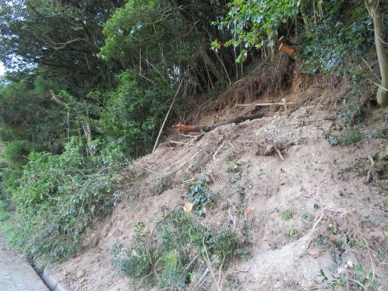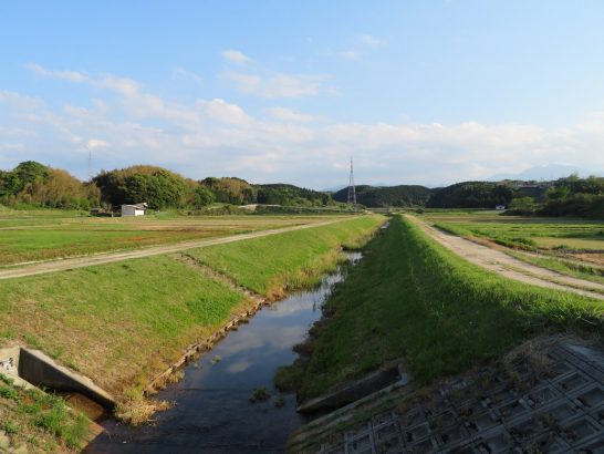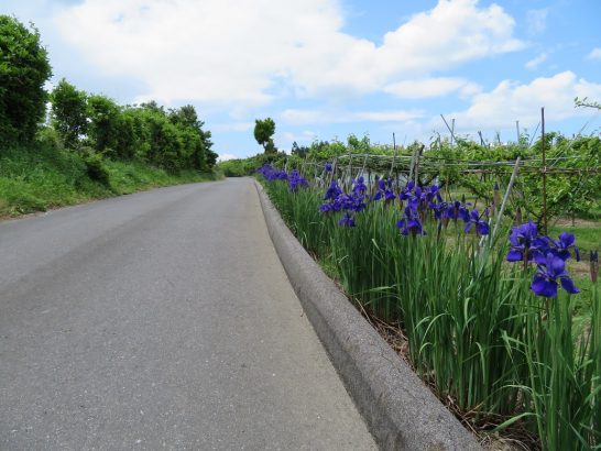 写真 ①散歩道の菖蒲? ②駐車場のツツジも満開 ③夕刻の田圃。もう水を引き込む段取りが出来たところもあれば開墾もできていないのもある。④先日まで通行止めだった倒木の現場。まだまだ危うい木がある。風雨の強い日は敬遠すべし。