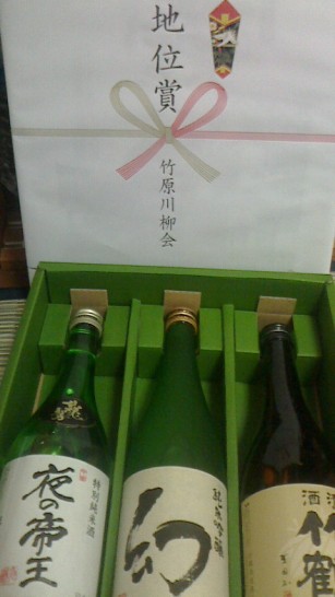 過日「清酒三本セット」を頂いた広島の川柳社から同じようなものがもう一セット届いたので送付ミスかな?と思ったら、今度は「地位賞」ゲットだそうで。