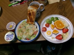 万歩計は、4,398歩。下の写真は、私の今朝の食事。