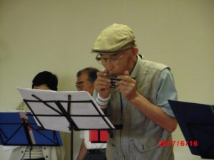 午後はデーサービスの施設で、ハーモニカのボランティア。7名で参加する。合奏は、かもめの水兵さん、船頭さん、この道,おぼろ月夜、夕やけ小焼け、ふるさとの、計6曲を演奏した後、独奏の部では、みかんの花咲く丘、お富さん、銀色の道、柔、北国の春など、それぞれが演奏し、私はハーモニカ3本持って、東京ラプソディと、演歌調に編曲してある、里の秋、2曲を吹いた。アンコールでは全員で、腰影のワルツと、それ行けカープを、気持ちよく演奏して帰った。