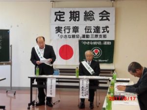 標題のように、小さな親切大きなお世話と揶揄されたこともあったが、「できる親切みんなでしよう それが社会の習慣になるように」をモットーに、小さな親切三原支部は、昭和44年から、今年48年の長きにわたって、活動を続け、今年も3人の方に、実行章を授与することが出来た。ちなみに、私が実行章を頂いたのは、もう10年も前の事であったが、私に受賞理由は、皆さんのと、少し違って、一年間黙々と町内の組内27軒に川柳を配り続けた結果、小さいながら句会らしきものを、地域の公民館で始めたのを、ある人の推薦で、地域文化の発展の為に、小さな努力を続けたことによる、受賞であった。その意味で、多くの、人にとっては、大きな迷惑であったようにおもう。