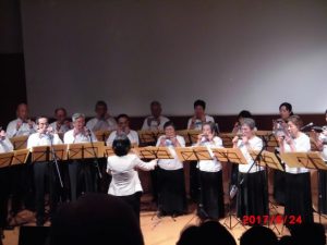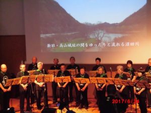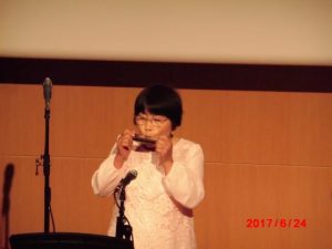 私たちのハーモニカの先生が、JRの駅、西へ一つ行った所の町で、ハーモニカ教室を開いておらるが、その教室の10周年記念演奏会があったので、家内と二人で聴きに行った。楽しい2時間を過ごさせて頂いた。独奏が主で、合奏はほんの一部であったが、お客の立場から言うと、合奏の方が聞きごたえがある様に思われる。その意味で言うと映像とナレーションと、聴衆の合唱を入れた、浮城物語が一番良かったように思う。