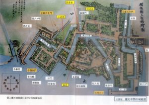 三原は今年、戦国の武将、毛利元就の三男、小早川隆が三原城を築いて、450年になる。村上水軍を掌中に収めた隆景は、本郷の山城では、何かと不便で、三原湾の小島を利用して埋め立て、海へ張り出した城を築き、名実ともに、天下人の仲間入りを果たした。その為満潮時に海から見ると、海に浮かんで見えたと言う。のが浮城の由来である。