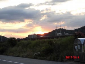 台風のせいか、風が気持ちよかったが、散歩コースの夕焼けもきれいだった。ウオーキングすること、65分。