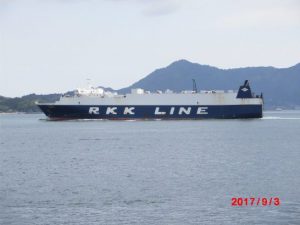 帰りには、沖を大型コンテナ船が東へ向けて走っていた。おそらく岡山の水島港へ自動車を積みに行くのだろうと思う。このように、海はいつでも表情を変える。小さな遊漁船も絵になるが、大型船も、趣がある。護衛艦の姿も何度か見たことがあるが、保安庁の取り締まりも時にはある。今はも乗ることはないが、現役のころは仕事で小型船舶を操縦した経験は20くらいある。ちなみに私は、一級小型船舶操縦士の免許を持っている。