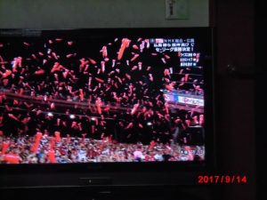 カープは、やっとの思いで5対4でDNAに勝って、阪神が負けるのを待ったが、阪神が巨人と引き分けたので、優勝はお預けになった。今日昼のラジオニュースでは、祝賀会用のビール、6.000本を準備していると言っていたが、お預けになった。明日以後の巨人戦で優勝は決まると思うが、この前巨人に3盾を食ったことがあるので、油断はならない。それにしても、今日の広島の町は、振り上げた拳の降ろしどころを探して、ストレスが溜まっているに違いない。