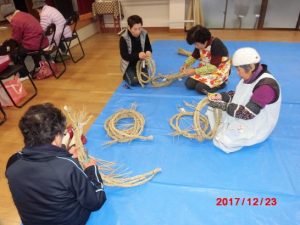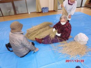 今日は喜楽会という老人会が、年に一度、稲荷さんや権現さんの掃除と、しめ縄を作って付け替える奉仕作業を、長年続けている。古老の話では、そのおかげでこの地域は火事がすくなのだそうだ。そうお言えば、隣の尾道市ではたくさんの家が一度に焼け、何人も焼死する火事が時々あるようだが、三原市では、そんな大きな火事はないように思う。しかしここも、御多分にもれず、しめ縄を作れる人が一人になったのと、餅米の藁が手に入りにくくなったようだ。それでも藁をそろえる人 、御幣を切る人、出来たしめ縄の、ヒゲを鋏で切る人、出来たしめ縄を取り付ける人と手際作業を終えることができた。何分24か所も取り換えるところがあるので、大変である。