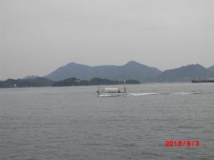 ヨットが全速で走っていないに、へさきを上げてすすんでいた。うしろに、帆をつけているので、魚を釣っているのかもしれない。今の時期、ギザミかホゴのたぐいだと思うが、ひょっとしたら蛸かもしれない。