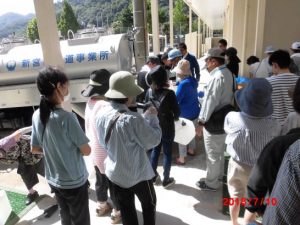 帰り際に給水車のボディを見たら、和歌山県の新宮市水道課から応援に来てくれていた。帰ってよく見ると水入れのビニール袋も新宮市のものであった。