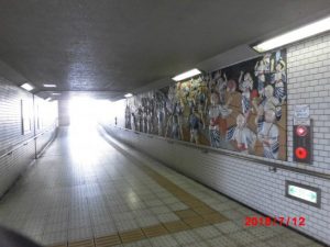 今日はハーモニカの日。駐車場に車を置いてからの歩きは、いつもこの地下道を通る。やっさ踊りのレリーフが迎えてくれるが、今日は豪雨の為いろいろな都合で欠席者多数で今日は教室は中止。帰りに、1.100の散髪に行って帰る。