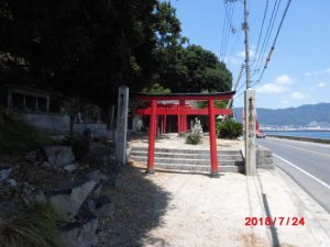 炎天下の海岸を、どこかに秋が落ちていないかと海岸線を車で走ってみたが、なにも落ちてはいなかった。ただ干潮にに向かう鳥居も足元をむき出しにして暑そうであった。
