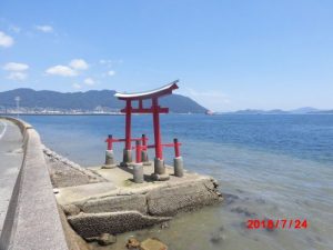 炎天下の海岸を、どこかに秋が落ちていないかと海岸線を車で走ってみたが、なにも落ちてはいなかった。ただ干潮にに向かう鳥居も足元をむき出しにして暑そうであった。