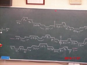 午後は老大で民謡教室。10月の発表会に向けて、写真上のようにリハーサル。黒板の音符を見ながら、みっちり先生の口真似をしながら真剣に歌うのは、この歳になっても新鮮で、心地よいものである。民謡の帰りに整形へよって帰る。